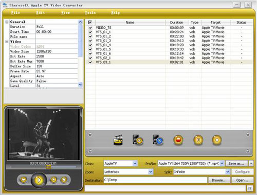 Apple TV Video Converter còn có chức năng chỉnh sửa mạnh mẽ, ví như cắt phim, chia nhỏ video lớn, chế độ zoom để tùy biến video đầu ra, cài đặt video và audio, chuyển đổi video theo nhóm,... Quá trình chuyển đổi sẽ được hoàn thành chỉ với một vài cú kích chuột.