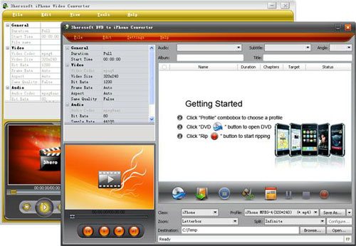 3herosoft DVD to iPhone Suite là giải pháp chuyển đổi video và DVD mạnh mẽ, có thể chuyển đổi đĩa DVD và tất cả các định dạng video sang định dạng MPEG-4, H.264, và định dạng audio MP3, WAV, M4A dành cho iPhone với chất lượng hình ảnh cao cùng tốc độ thực hiện nhanh. Bộ sản phẩm này bao gồm 2 công cụ: iPhone Video Converter và DVD to iPhone Converter.