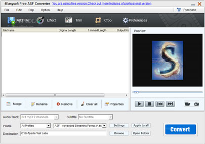 4Easysoft Free ASF Converter là một ứng dụng chuyển đổi file video phổ biến sang định dạng ASF. Nó cũng có thể trích xuất âm thanh từ các file ASF sang MP3 và MP2.