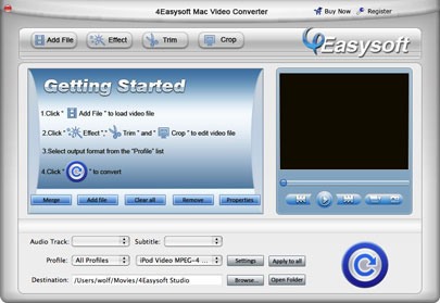 4Easysoft Mac Video Converter là một phần mềm chuyển đổi dành cho Mac, có thể chuyển đổi tất cả các loại video, bao gồm cả General Videos (FLV, WMV. SWF, MP4, RM, RMVB, AVI, 3GP...) và HD video (MOD , M2TS, MTS, TS, MP4, MOV, RM ...) đến iPod, iPhone, iPhone 3.0 OS, PSP, Zune, Creative Zen, Wii, ngay cả Gphone và điện thoại di động phổ biến khác ...4Easysoft Mac Video Converter cũng có thể trích xuất âm thanh từ video của bạn sang MP3, MP2, AAC, OGG, WMA, FLAC...