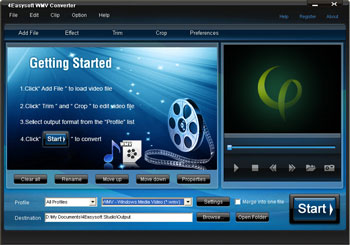 4Easysoft WMV Converter cung cấp giải pháp để chuyển đổi các định dạng video phổ biến sang định dạng WMV với chất lượng hình ảnh và âm thanh tốt nhất. 4Easysoft WMV Converter hỗ trợ hầu hết tất cả các định dạng nguồn, bao gồm cả FLV (FLV to WMV), MPEG, MPG, ASF, MOD, VOB, AVI, RM, YouTube .v.v.. Bạn có thể. trích xuất âm thanh từ file video sang MP3 và WMA được hỗ trợ bởi Creative Zen, Archos, Sansa...