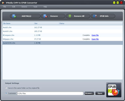 4Media CHM to EPUB Converter có thể giúp bạn chuyển đổi định dạng file CHM sang EPUB ebook một cách thuận tiện và dễ dàng để xem trên các thiết bị di động khác nhau.