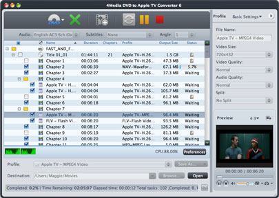 Với 4Media DVD to Apple TV Converter, việc xem phim DVD trên Apple TV của bạn trở nên dễ dàng hơn bao giờ hết. Nó là một chuyên gia trong việc chuyển đổi DVD sang Apple TV với chất lượng và tốc độ chuyển đổi DVD cao, không những thế nó còn rip DVD sang MP4, MPEG-4, H.264 và định dạng FLV, cũng như MP3, WAV, AAC audio từ DVD movies sang Apple TV.
