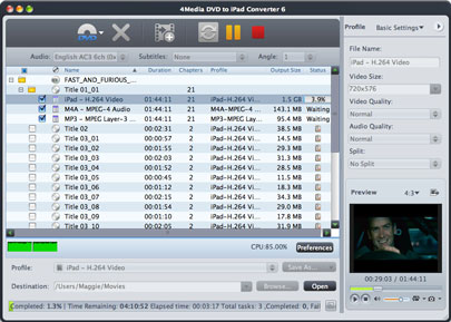 Phần mềm DVD to iPad Converter giúp bạn rip DVD đến iPad H.264, MPEG-4, và MP4 video ở những độ phân giải khác nhau cũng như trích xuất âm thanh từ phim DVD và chuyển đổi chúng sang iPad MP3, AAC, M4A và audio.