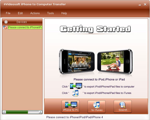 4Videosoft iPhone to Computer Transfer là phần mềm truyền iPhone sang máy tính để người dùng có thể truyền các bài hát, các bộ phim, ảnh, nhạc chuông từ iPhone sang máy tính rất dễ dàng mà không làm mất bất kì một file nào. Thêm vào đó, công cụ này còn hỗ trợ tất cả các mẫu iPhone/iPod, bao gồm iPhone OS 3.0/3.1, iPod Firmware 3.0/3/1, iPad, iPhone 4, iOS 4.2.