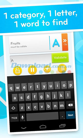- 1 loại và 1 chữ: tìm càng nhiều câu trả lời đúng càng tốt! Bộ não của bạn sẽ thực sự căng ra và phát huy hết khả năng của mình trong ứng dụng kiểm tra kiến thức miễn phí này.