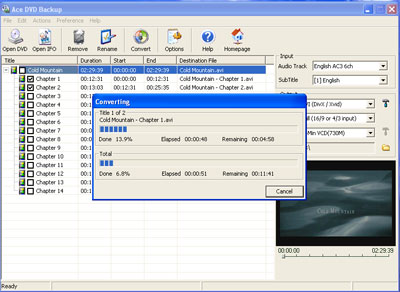 Ace DVD Backup là một công cụ mạnh mẽ và dễ sử dụng giúp bạn sao lưu các file video DVD và có thể chuyển đổi chúng sang các định dạng video phổ biến như VCD, SVCD, MPEG, AVI, DIVX.