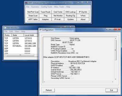 Các modul thông tin cũng rất hữu dụng. Với chúng, bạn có thể kiểm tra bản định tuyến, cùng với đó là thêm và xóa các entry trong nó. Bạn cũng tìm ra các địa chỉ IP nào có sẵn đã được gán với mạng của mình. Các modul khác thực hiện công việc tra cứu DNS nâng cao, cho phép bạn có thể xem các adapter mạng đã được kết nối với máy tính trong mạng, bên cạnh đó còn có thể thêm, bớt các địa chỉ IP...