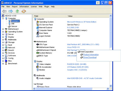 AIDA32 là một tiện ích khá mạnh, có thể cung cấp cho bạn đầy đủ các thông tin hệ thống cả về phần cứng lẫn phần mềm. Ngoài các tính năng cần có như thông tin về hệ điều hành, lượng bộ nhớ ... bạn còn có thể xem mainboard mình đang sử dụng là loại gì, chạy với RAM như thế nào, thông tin về chipset... và nó còn có thể cho bạn biết loại card màn hình mà bạn dùng chạy khe PCI hay AGP, AGP 1X/2X/4X hay 8X.