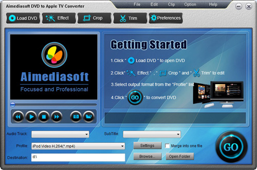 - Rip đĩa DVD sang video Apple TV hỗ trợ: Aimediasoft DVD to Apple TV Converter có thể dễ dàng rip đĩa DVD sang định dạng video MP4, H.264/MPEG-4 AVC, MOV, M4V - định dạng được hỗ trợ bởi iPod/iPad/iPhone/Apple TV.