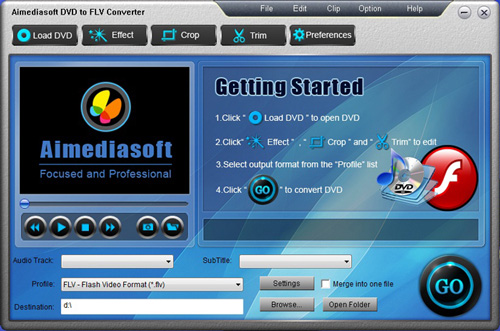 Aimediasoft DVD to FLV Converter là phần mềm chuyển đổi DVD sang FLV chuyên nghiệp với tốc độ chuyển đổi cao và chất lượng tuyệt vời. Phần mềm này có thể chuyển đổi DVD sang định dạng FLV, SWF dành cho Youtube, Myspace và Google video,...