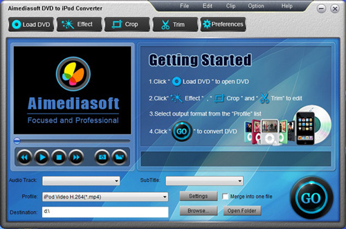 Là phần mềm chuyển đổi tốt nhất, Aimediasoft DVD to iPod Converter cung cấp cho người dùng rất nhiều lựa chọn, ví như cắt phim DVD, cắt kích cỡ phim DVD, hiệu ứng video DVD, lựa chọn phụ đề và audio track, chụp cảnh yêu thích trong phim,.....