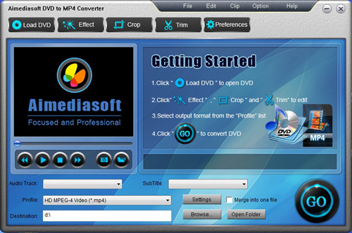 Aimediasoft DVD to MP4 Converter là phần mềm chuyển đổi DVD sang MP4 toàn diện, có thể giúp bạn chuyển đổi DVD sang định dạng MP4, H.264/MPEG-4 AVC (.mp4), MOV, AVI, và chuyển đổi DVD sang HD MP4, HD MOV, HD AVI, DVD sang định dạng audio như M4A, MP3, AAC,...cho tất cả các máy chạy MP4 như iPod, iPod touch, iPod nano, iPhone, iPhone 3G, iPhone 3GS, PSP, Creative Zen, Zune, Zune 2, iRiver PMP, Archos, PS3, Xbox,...