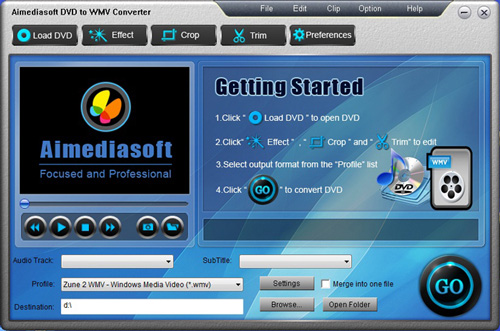 Aimediasoft DVD to WMV Converter là phần mềm chuyển đổi DVD sang WMV chuyên nghiệp, có thể chuyển đổi DVD sang định dạng WMV, WMA, MP3 với chất lượng tuyệt vời và tốc độ chuyển đổi nhanh. Phần mềm chuyển đổi này hỗ trợ hầu hết các đầu chạy WMV phổ biến như Google Phone, BlackBerry Storm, BlackBerry Bold, Palm Pre, Zune, Zune 2, PSP, PS3, Xbox 360, Dell Player, HP iPAQ...