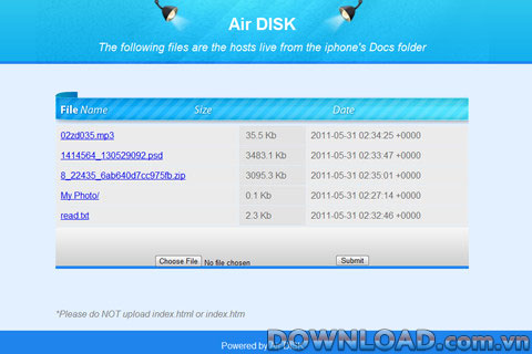 Air Disk for iOS là phần mềm chia sẻ file HTTP, ổ đĩa USB, upload và download file từ iPhone/iPad.