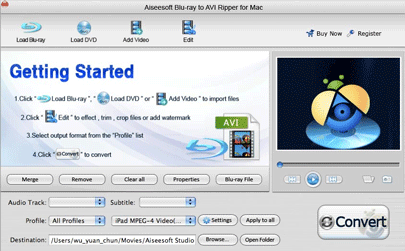 Aiseesoft Blu-ray to AVI Ripper for Mac có thể rip đĩa Blu Ray DVD và chuyển đổi file sang AVI cũng như chuyển đổi video/audio sang định dạng file AVI. Blu-ray to AVI Ripper là một trong những phần mềm rip đĩa Blu Ray hoàn hảo cho bạn rip BD, DVD và chuyển đổi video sang AVI trên máy Mac.