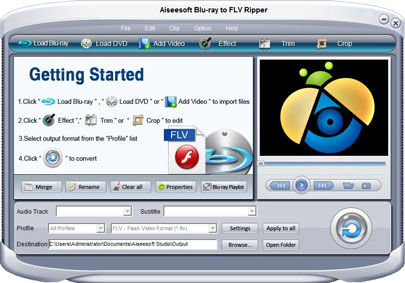 Aiseesoft Blu-ray to FLV Ripper là một phần mềm trích xuất Blu-ray và nó hoàn toàn có thể chuyển đổi đĩa Blu-ray DVD sang FLV, SWF để bạn có thể tải lên YouTube, MySpace và các trang web video của Google. Ngoài ra, với chức năng chỉnh sửa video linh hoạt, bạn có thể dễ dàng chỉnh sửa phim Blu-ray hoặc video ưa thích để tạo ra video của riêng cá nhân bạn.