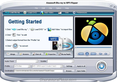 Blu-ray to MP3 ripper cung cấp các chức năng để thay đổi tập tin đầu ra như cắt, xén video, sáp nhập một số đoạn video vào một tập tin....