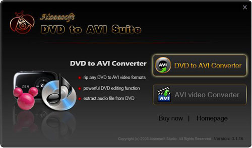 - Rip DVD sang định dạng AVI: Aiseesoft DVD to AVI Suite cho phép bạn rip bất kì file DVD nào sang định dạng AVI và các định dạng video khác.