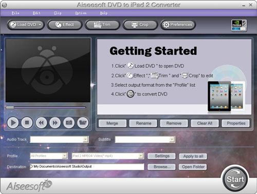 - Rip DVD sang các file iPad 2: Aiseesoft DVD to iPad 2 Converter có thể giúp người dùng rip bất kì đĩa DVD nào sang định dạng video tương thích với iPad 2.