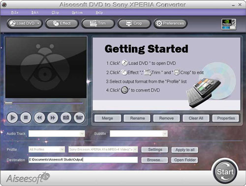 Aiseesoft DVD to Sony XPERIA Converter, phần mềm chuyển đổi DVD sang thiết bị Sony XPERIA X1 chuyên nghiệp, không chỉ sở hữu giải pháp rip/chuyển đổi DVD sang định dạng Sony XPERIA X1 MP4, 3GP, 3G2, mà còn có thể rip DVD sang Sony Walkman, PSP, PS3. Phần mềm này cho phép bạn trích xuất nhạc (định dạng audio MP3, M4A, WAV, WMA) từ đĩa DVD rất hiệu quả.