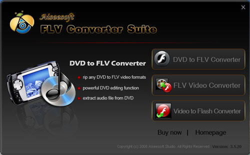 - Chuyển đổi DVD sang FLV: Aiseesoft FLV Converter Suite có thể chuyển đổi DVD sang định dạng FLV dành cho YouTube, Myspace, Google video,....