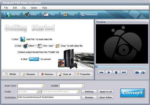 - Các chức năng chỉnh sửa video mạnh mẽ: Aiseesoft PS3 Video Converter hỗ trợ người dùng đặt hiệu ứng video, cắt bất kì clip video nào, cắt kích cỡ video, nối một vài file video lại với nhau, thêm dấu mờ.