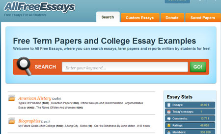 AllFreeessays là một hệ thống tổng hợp trên 50.000 bài luận khác nhau bằng ngôn ngữ tiếng Anh của các sinh viên. Các bài luận được phân loại theo nhiều chủ đề khác nhau. Tại trang chủ, bạn có thể tìm thấy được danh mục các bài luận với hơn 14 chủ đề khác nhau.