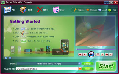 Aluxsoft Total Video Converter có thể chuyển đổi các tập tin video và âm thanh giữa tất cả các định dạng phổ biến. Chương trình hỗ trợ nhiều định dạng video bao gồm DVD, VCD, AVI, MPEG, MP4, WMV, 3GP, PSP MP4, iPod MOV, ASF. Nó cũng cung cấp một cách dễ dàng để chuyển đổi video hoặc âm thanh sang định dạng âm thanh phổ biến như MP2, MP3, AC3, M4A, OGG, AAC. Aluxsoft Total Video Converter có thể hỗ trợ nhiều thiết bị phương tiện truyền thông phổ biến. Nó có thể chuyển đổi video sang định dạng cho các thiết bị nhanh chóng và với chất lượng cao.