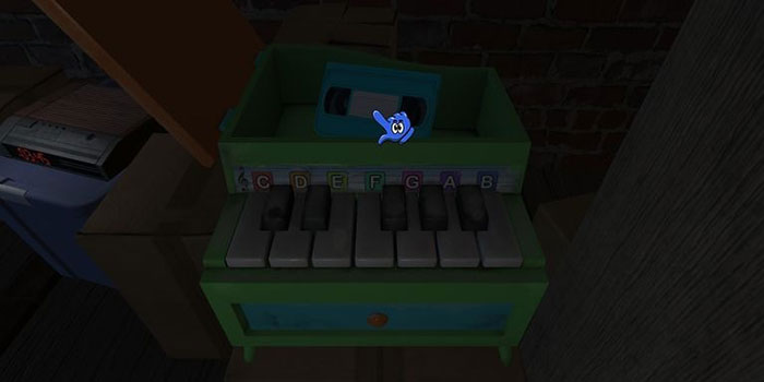 Sau khi hoàn thành video này, hãy quay lại và nhìn vào bảng. Bây giờ có một cây đàn piano, hãy đánh CBF trên phím đàn. Nếu được chơi theo đúng thứ tự, đàn piano sẽ mở ra và cung cấp cho người chơi cuốn băng tiếp theo.