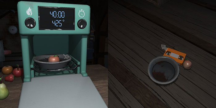 Đặt đào vào hộp bánh, sau đó đặt chúng vào lò nướng. Đặt nhiệt độ cho lò nướng ở mức 425 độ bằng nút xoay bên trái, sau đó đặt hẹn giờ thành 40 phút bằng nút xoay bên phải. Đóng cửa lò và nó sẽ phun ra quả đào, hộp thiếc và cuộn băng màu cam ra cho người chơi.