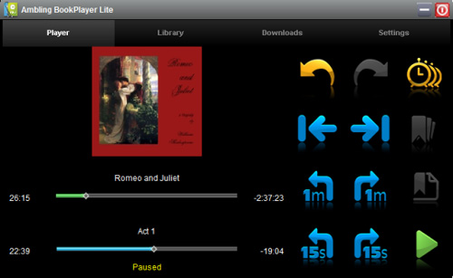 - Tìm kiếm và nghe audiobook rất đơn giản và dễ dàng. Người dùng chỉ việc chọn sách và ứng dụng sẽ tự động download từ trang AmblingBooks.com để bạn nghe.