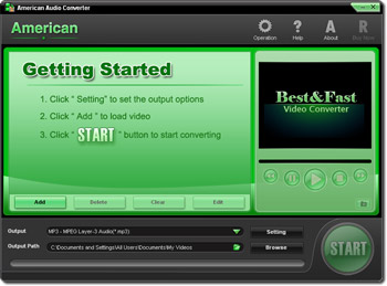American Audio Converter là một phần mềm chuyển đổi âm thanh có thể giúp bạn chuyển đổi giữa nhiều định dạng video khác nhau. Chương trình này có thể chuyển đổi giữa các định dạng như M4A, MP3, AC3, WMA, WAV, OGG, APE, MKA, AAC, AU, AIFF, FLAC hoặc chuyển đổi video AVI, MPEG, 3GP, FLV, MOV, MPG, MKV sang các tập tin âm thanh với chất lượng cao và tốc độ nhanh. Với các tập tin âm thanh thu được, bạn có thể chơi chúng trên các thiết bị di động như iPod, iPhone, PS3, Xbox, BlackBerry, máy nghe nhạc MP4,...
