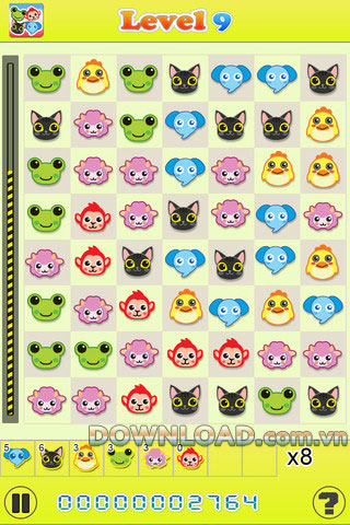 Animal Pair Up HD là dạng game tìm cặp 3 với giao diện hoàn toàn mới lạ của những chú thú dễ thương. Nhiệm vụ của người chơi là xếp từ 3 con thú giống nhau trở lên theo hàng dọc hoặc ngang để chúng biến mất.