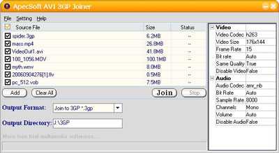 Tuy nhiên trong lĩnh vực này không phải phần mềm nào cũng có khả năng ráp nối trực tiếp từ các file Flash video (.flv) hay 3gp mà bạn phải convert chúng sang một dạng video thông dụng khác trước khi ráp nối. Điều này quả thực là phiền phức và không phải là một giải pháp hay. ApecSoft AVI 3GP Joiner (ASJ) là một giải pháp hay trong trường hợp này. Đây là một công cụ 2 trong 1, vừa nối các file video lại với nhau đồng thời convert file đã ráp nối sang định dạng 3gp để xem trên mobile hay avi để xem trên PC.