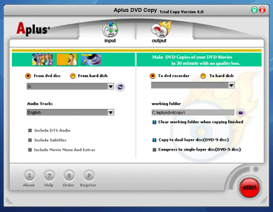 Aplus DVD Copy là công cụ sao chép đĩa DVD và ghi bộ sưu tập phim DVD sang đĩa DVD-R(W) và DVD+R(W) rất chuyên nghiệp với chất lượng file gốc được giữ nguyên và có thể chạy trên bất kì đầu DVD nào. Ngoài ra, nó còn giúp giữ đĩa DVD của bạn được an toàn khỏi bị xước hoặc bị hỏng.