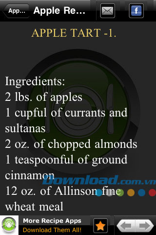 Apple Recipes Cookbook for iOS là ứng dụng sách dạy nấu ăn các món từ táo cho iPhone/iPad.