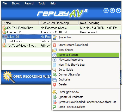 Replay AV là phần mềm duy nhất mà kết hợp Stream Capture, Audio Recording và Enhanced Podcast Client một trong giao diện dễ chung, dễ sử dụng. Điều này cho phép bạn ghi lại âm thanh với chất lượng tốt hơn bao giờ hết và có khả năng ghi hình nhiều chương trình cùng một lúc. Phần mềm dễ dàng ghi lại các đoạn video hoặc audio. Việc của bạn thật đơn giản, chỉ cần chọn chọn: Record, Stream Capture từ hệ thống menu, sau đó hãy mở clip bạn cần ghi. Phần mềm sẽ tự động làm việc và ghi lại hình ảnh và âm thanh bạn cần