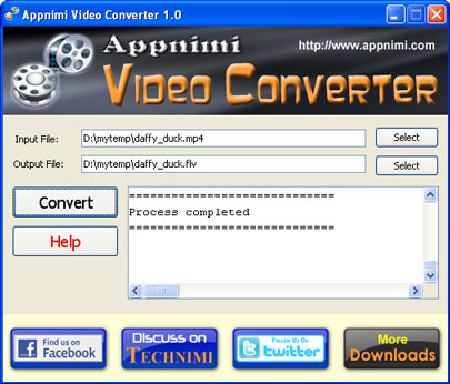 Appnimi Video converter là một tiện ích dùng để chuyển đổi các file video từ một định dạng khác. Giao diện sử dụng đơn giản để giúp người dùng nhập file đầu vào và đường dẫn của file đầu ra dễ dàng. Nó tự động phát hiện các định dạng tập tin từ tập tin đầu vào.