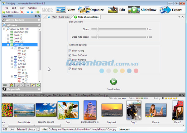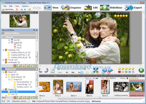 Giờ đây, Artensoft Photo Editor sẽ giúp bạn sắp xếp, phân loại và tìm kiếm ảnh mình muốn một cách nhanh chóng, đơn giản và dễ dàng hơn. Cho dù có bao nhiêu thư mục ảnh mà bạn lưu trên ổ cứng thì phần mềm này vẫn có thể nhập và sắp xếp chúng một cách thuận tiện. Nhờ đó, sẽ dễ dàng quản lý, xem và điều chỉnh tất cả bức ảnh tại một vị trí duy nhất.