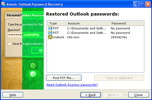 Atomic Outlook Password Recovery bao gồm Atomic PST Password Recovery và một "Outlook part" một phần của Atomic Mailbox Password Recovery. Thực chất, đây là một giải pháp hiệu quả đối với người dùng Outlook khi họ quên mật khẩu.