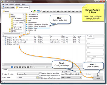 Để bắt đầu, bạn chỉ cần kéo thả file vào cửa sổ chương trình, chọn các thiết đặt đầu ra và click nút bấm "Convert". Audio Transcoder sẽ tự động thực hiện phần còn lại. Chương trình chuyển đổi file âm thanh một cách nhanh chóng với chất lượng tốt. Khi việc chuyển đổi kết thúc, bạn có thể nạp các file nhạc vào các thiết bị cầm tay như iPhone, iPod, MP3 Player, điện thoại di động.
