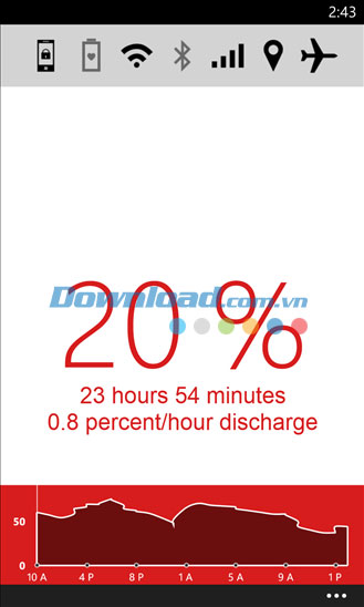 Battery Meter for Windows Phone hiển thị phần trăm pin hiện thời của bạn và tính toán thời gian xả hết pin. Ngoài ra, ứng dụng cũng hiển thị phần trăm còn lại và thời gian xả trên các ô trực tiếp của màn hình chính.