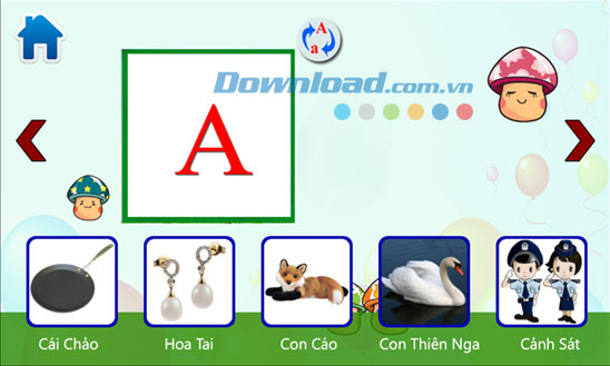 Ứng dụng gồm toàn bộ 29 chữ cái, 10 số và các dấu trong tiếng Việt, được trình bày rất chi tiết, với nhiều từ vựng quen thuộc với các bé.