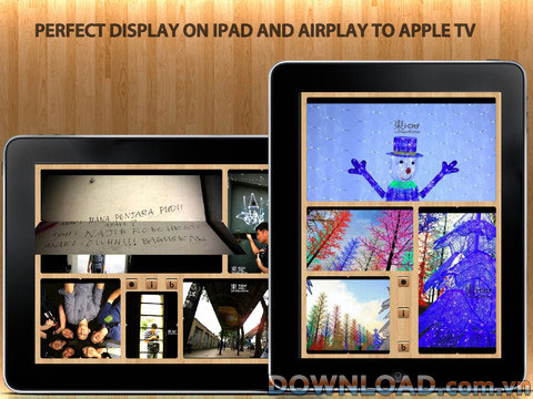 Với ứng dụng này, người dùng có thể lật các khối thủ công hoặc thiết lập chế độ tự động và hiển thị trên Apple TV hoặc iPad một cách dễ dàng; tùy chỉnh nền ảnh với 15 hình nền độ phân giải cao; chọn hiệu ứng đặc biệt để hỗ trợ trình xem ảnh.