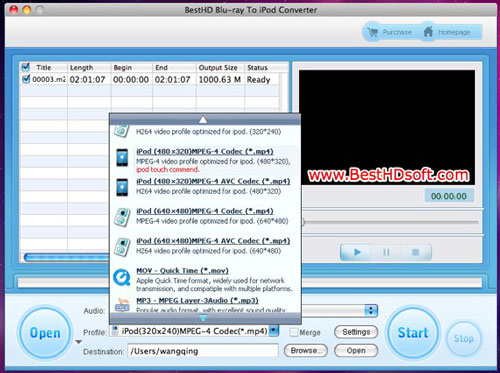 Blu-ray to iPod Converter for Mac là một trong những phần mềm rip Bluray rất dễ sử dụng. Phần mềm này có thể rip đĩa Bluray và chuyển đổi các file sang iPod và chuyển đổi định dạng audio sang định dạng iPod hỗ trợ. Phần mềm này cũng là phần mềm mạnh mẽ với rất nhiều chức năng như chỉnh sửa độ sáng tối, tương phản của video.