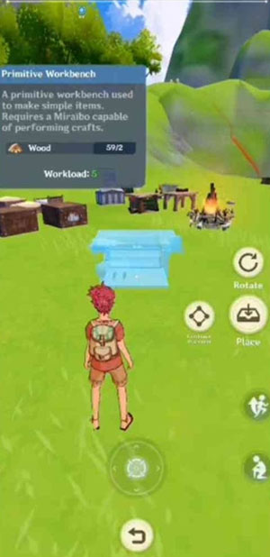 Người chơi có thể thu thập tài nguyên cần thiết bằng cách nhặt chúng trên mặt đất hoặc sử dụng nhiều công cụ khác nhau, chẳng hạn như rìu. Ngoài ra, có thể đánh bại Miraibo tại đây và thu thập các vật phẩm mà chúng đánh rơi. Thông qua mỗi phương pháp, game thủ có thể thu thập một tài nguyên mà mình cần. Do đó, hãy đảm bảo sử dụng tất cả các phương pháp này để farm tài nguyên thiết yếu.
