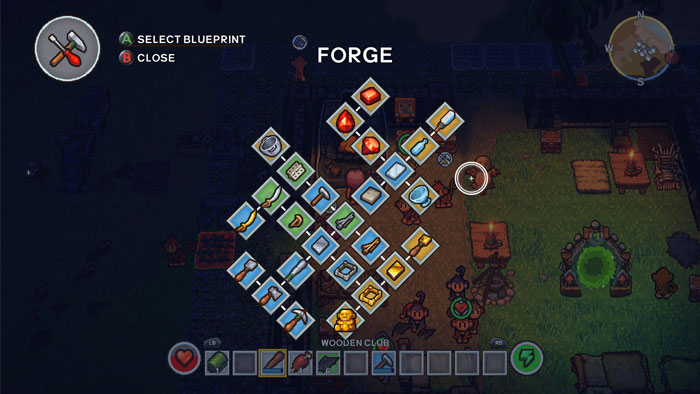 Phần lớn các công thức sẽ bị khóa cho đến khi xây dựng những thứ đơn giản hơn. Cỏ khô cuối cùng sẽ dẫn đến một cây cung và đá sẽ tạo ra một cái xẻng. Người chơi có thể phải đóng đinh trước khi có cơ hội chế tạo một công cụ đa năng. Ngay cả khi có vẻ không đáng, hãy chế tạo mọi thứ.