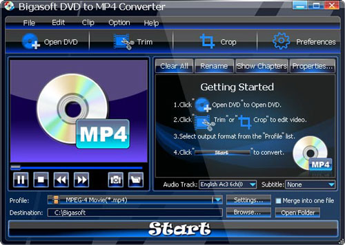 - Trích xuất audio từ đĩa DVD: Bigasoft DVD to MP4 converter dễ dàng rip nhạc từ đĩa DVD và chuyển đổi chúng ngay sau đó.