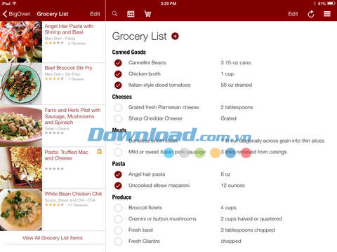 BigOven for iPad cung cấp tới người dùng hơn 250 nghìn công thức chế biến món ăn và danh sách các loại thực phẩm khác nhau.